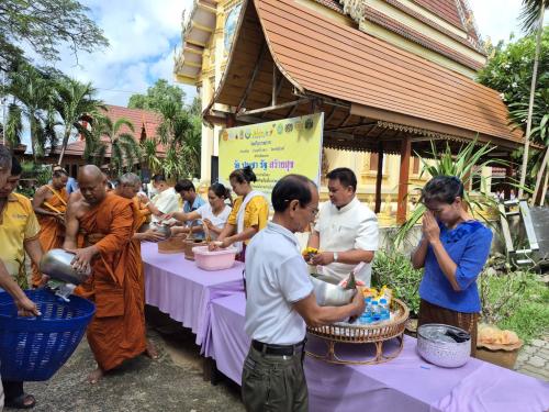 นายปรเมศร์ จันทร์แสง นายอำเภอสำโรงทาบ เป็นประธานในพิธีทำบุญใส่บาตร ตามโครงการ “นายอำเภอชวน สวมผ้าไทย ใส่บาตร” เพื่อมอบให้แก่ครัวเรือนที่ประสบปัญหาตามโครงการบริหารจัดการแก้ไขปัญหาความยากจน และลดความเหลื่อมล้ำ จังหวัดสุรินทร์ และร่วมรณรงค์การสวมใส่ผ้าไทย โดยมี นายกองค์การบริหารส่วนตำบลศรีสุข หัวหน้าส่วนราชการ ผู้ปกครองท้องที่ ผู้บริหาร อปท. ผู้บริหารสถานศึกษา นักเรียน นักศึกษา และพุทธศาสนิกชนในพื้นที่เข้าร่วมพิธีฯ ณ วัดศรีสุวรรณราช หมู่ที่ 2 ตำบลศรีสุข อำเภอสำโรงทาบ จังหวัดสุรินทร์